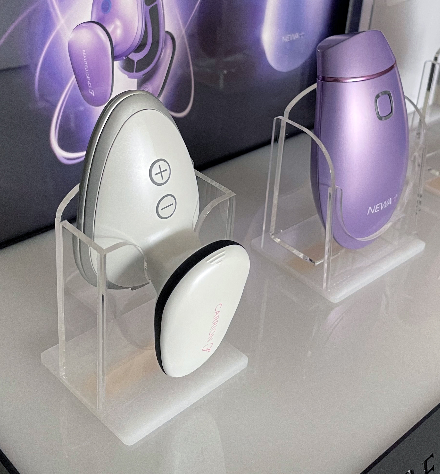 こちらの什器は内部が発光する設計になっておりメインの商品をライティングし売り場でもアイキャッチ抜群です。