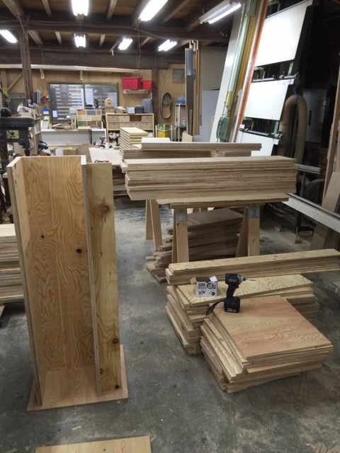 ラーチ合板で作っています☆ラーチ合板で什器はよく使います